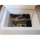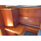 後部左舷側に1人掛けのソファとテーブル、収納庫が装備されております。