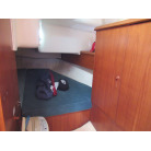 後部左舷側にクルーベットルームがあり、大人1人が横になれるスペースがあります。