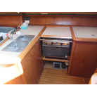 後部右舷側にギャレーがあり、シンク、ガスコンロ、オーブン、電子レンジ、冷蔵庫が装備されております。