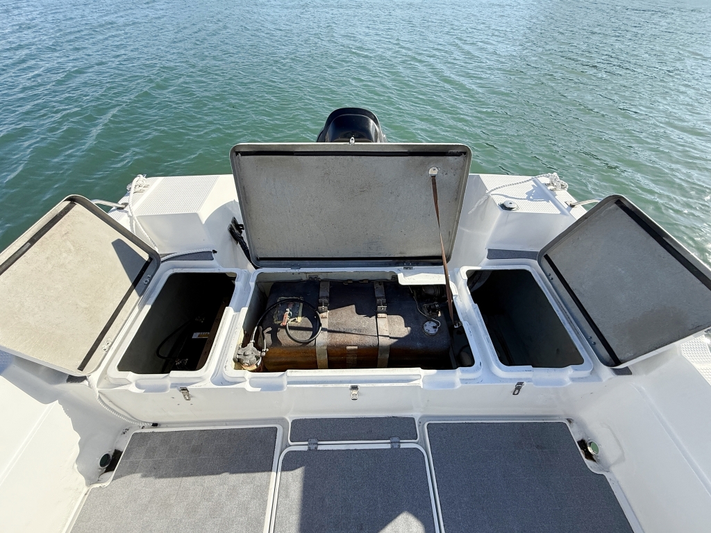 ウォークアラウンドなのはもちろんのことバウデッキ・アフトデッキ共に使い勝手も良く、トイレも装備しているため女性やお子様にも安心です。