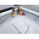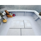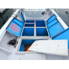 バウデッキ前方には内蓋付きのスペースがあり、その他の収納スペースも大容量でイケスは前後にあります。