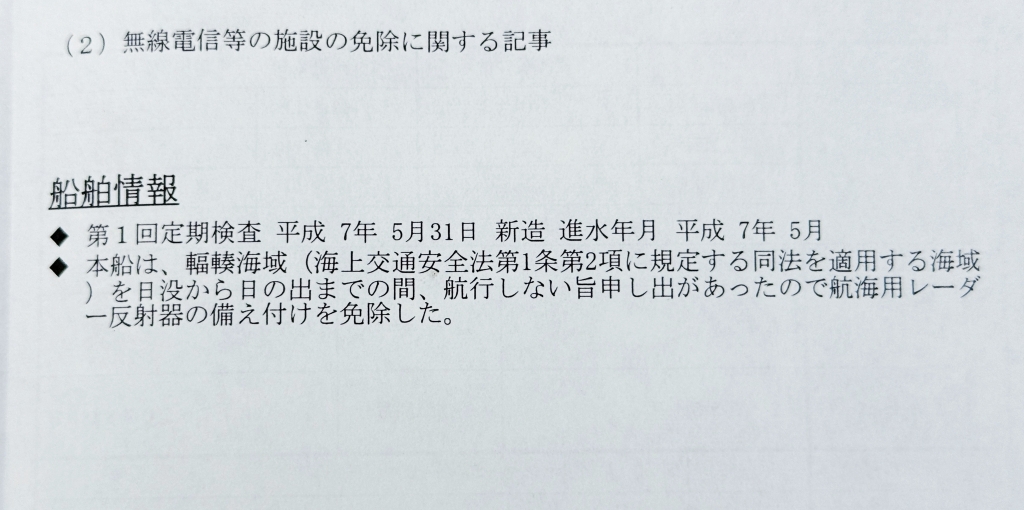 | 進水年月日 | 1995(平成7)年5月 | 製造年式 | 1995(平成7)年 |