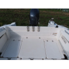 広いスペースのアフトデッキには、釣りには欠かせないイケスや各種物入れなどが装備されています。