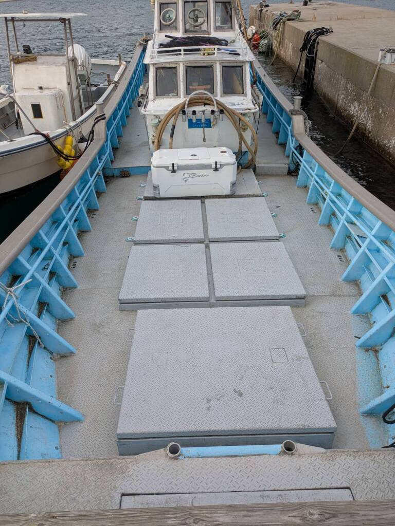 デッキには5つのハッチがあり、船首から1番目は氷室で残り4つはイケスです。