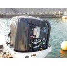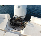 エンジンはスズキの4ストローク船外機115馬力を搭載、数年前に新品エンジンに載せ替えましたがオーナー様は多忙のためほとんど乗られていません。アワーメーターは1038時間となっていますがこのエンジンを載せ替えてからは50時間ほどしか稼働していないそうです。調子はもちろん絶良好です。