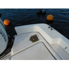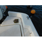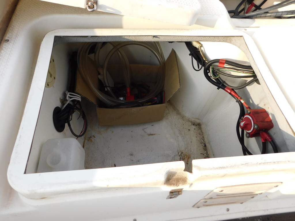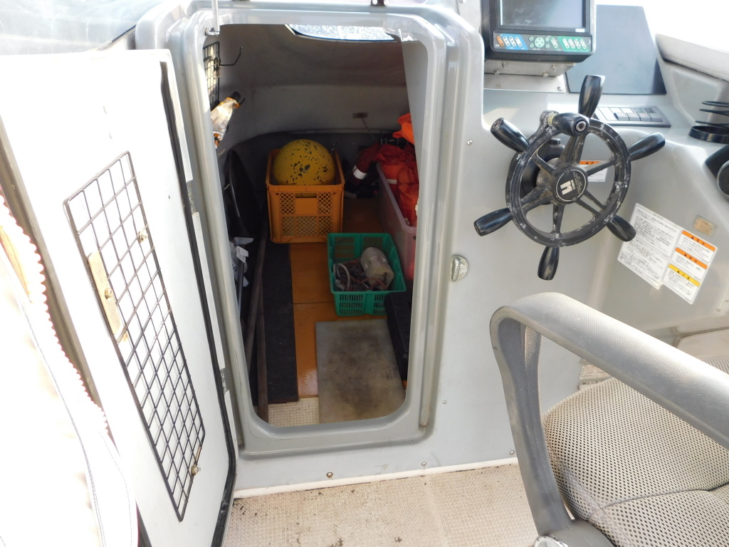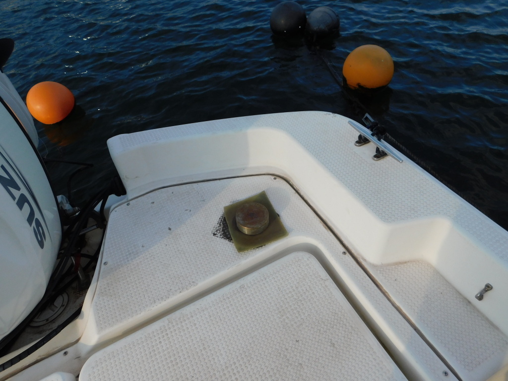 デッキは23フィートの割には前後とも十分にスペースがあり前後での釣りにも対応できそうです。デッキ面はやや汚れがありますがしっかり掃除をすればきれいになりそうです。痛みやフワ付いたような箇所はなく、滑り止めも摩耗したようなところも見受けられません。