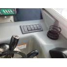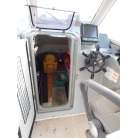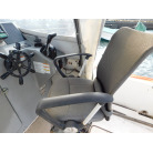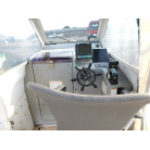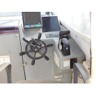 操船席はシンプルな作りで視界はよさそうです。HONDEXの魚探が装備されています。