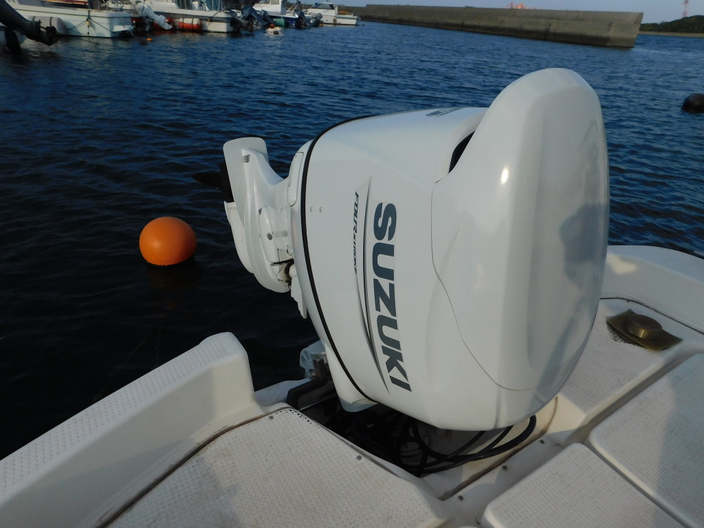 スズキの4ストロークエンジン115馬力11503F。このサイズには十分なパワーでしょう。オーナー様は装換後ほとんど出航できず、アワーメーターは1038時間と表示されていますが、それは前のエンジンからの時間で実質50時間ほどだということです。取材当日ももちろん一発始動で好調のようでした。