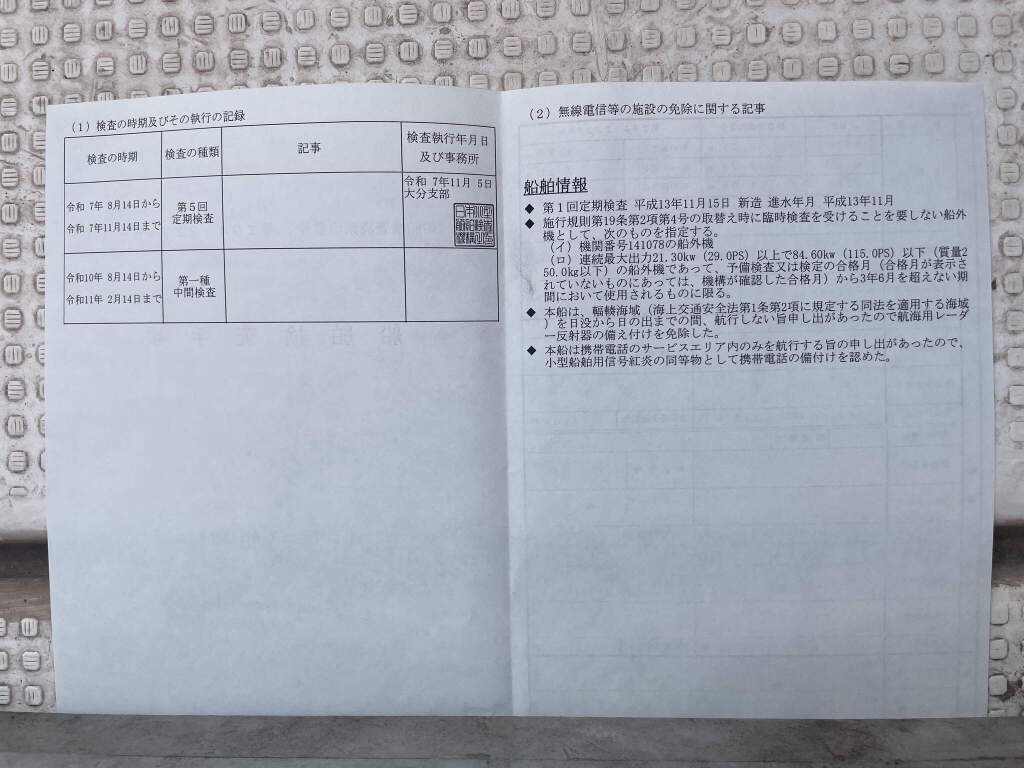 | 定員 | 6人 | 次回船検 | 中間検査(2029年02月14日) |
