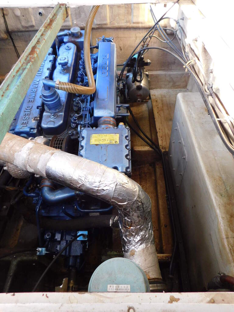 エンジンいすゞの6気筒UM6BG1TC2数年前に新品に乗せ替えられたようです。230馬力でパワーも十分で、スピードもかなり期待できそうです。10月にクラッチ回りを新品に交換されました。広さと安定感でまだまだ活躍できそうです。