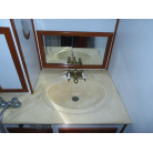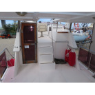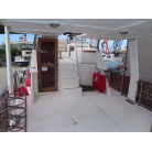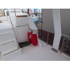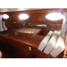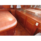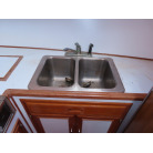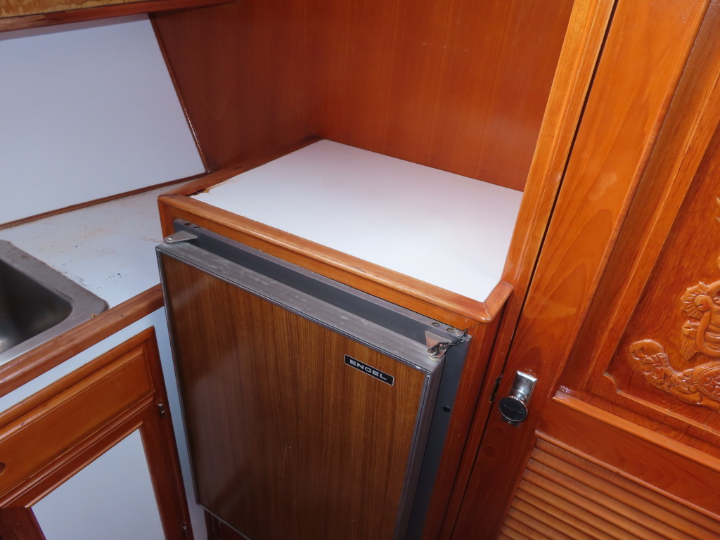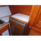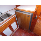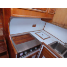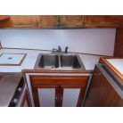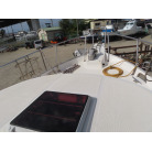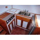 センターキャビンからバウ側に階段を降りると右舷側にギャレーがあり、ダブルシンク・電磁プレートが装備されています。