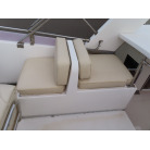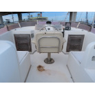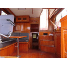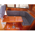 センターキャビンは、ゆったりとした広さで右舷側にL型のソファーを装備し、ロアーステーションが右舷側に備え付けられています。