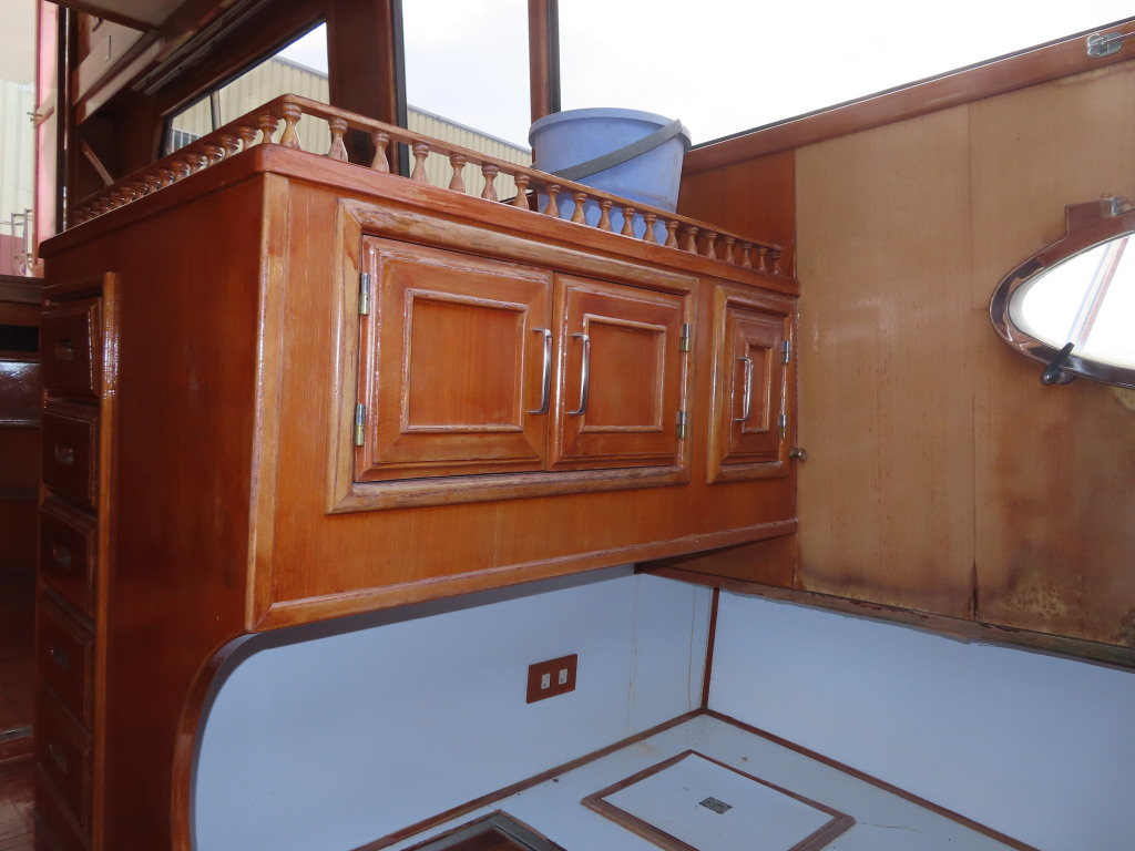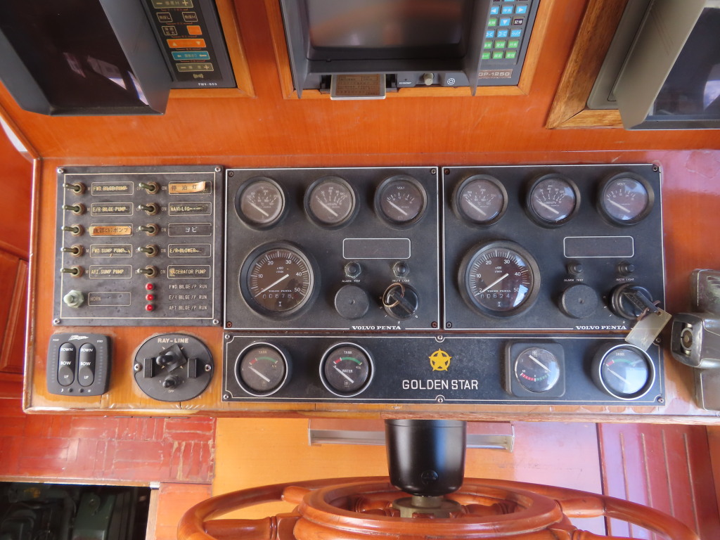 センターキャビンの左舷側にロアーステーションが装備され、各種メーターや航海計器が装備されています。