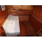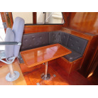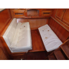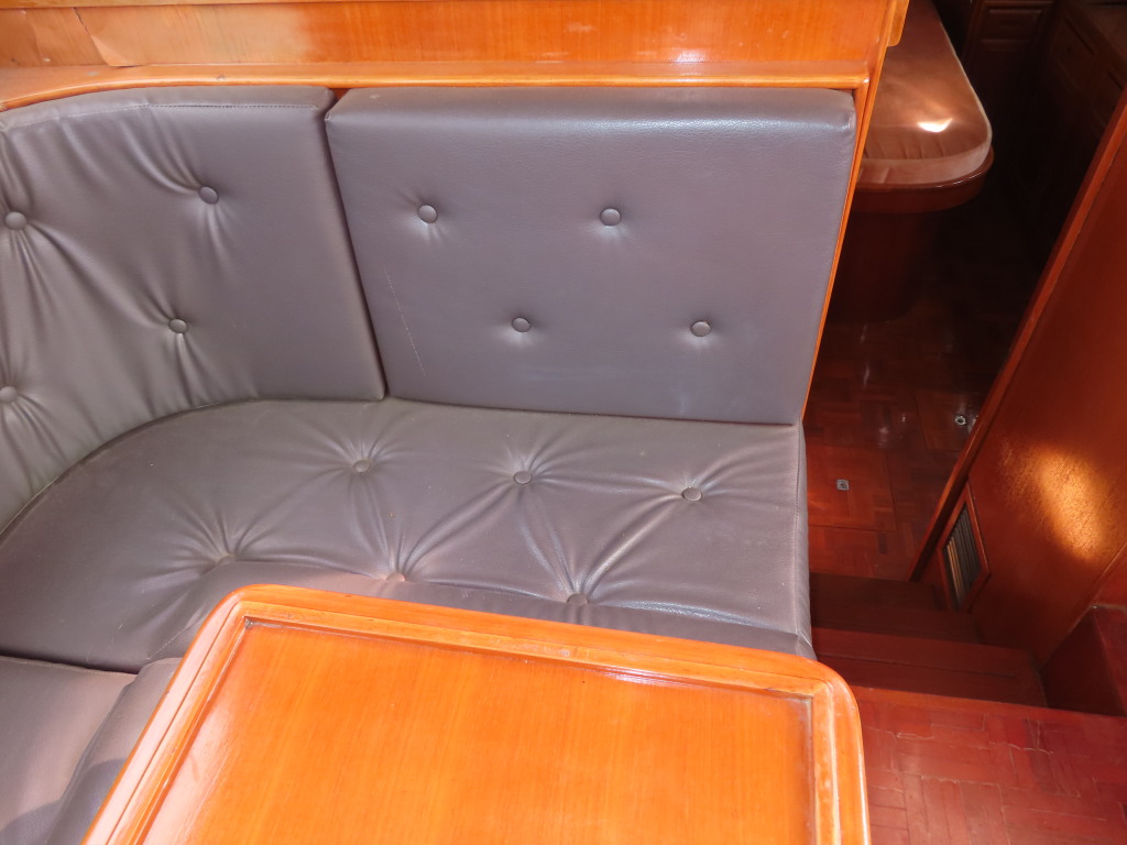 ギャレーの反対の左舷側にソファーがあり、ソファーには大人4人ぐらいが対面で座れるソファーとなっています。