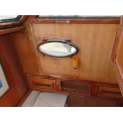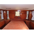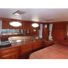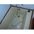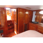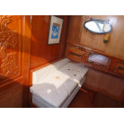 このオーナーズルームには、マリンエアコンが装備され広いスペースで中央に大型のベッドが備え付けられています、また電動個室マリントイレで温水シャワーやバスタブ付きとなっています。