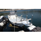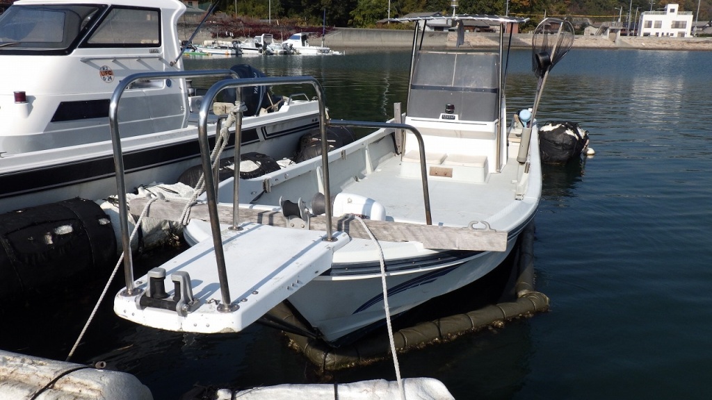 エンジンはヤマハの4サイクル 150馬力で、まるまる時間と 船齢で考えると大変 少ない 稼働時間だと思われます。エンジンは写真でお分かりのように サビ ひとつなく オイル漏れ 水漏れの後もありません。150馬力のエンジンで.最高速度は 30ノット に達するそうです'。これだけのスピードが出ますと釣り場まで早く行けるメリットがあります。また この船は岡山の幹線道路から5分ぐらい離れた港につないでありますが、 係留の権利がそのまま継続できるとのことです。詳しくは担当者にお尋ねください。