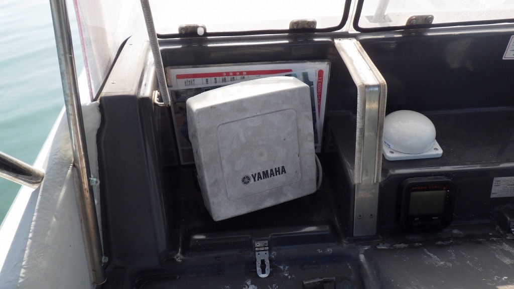 運転席には ヤマハの GPS 魚探 が装備されています。