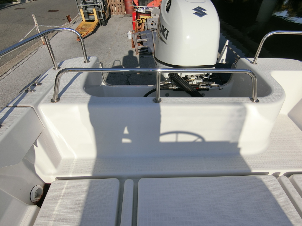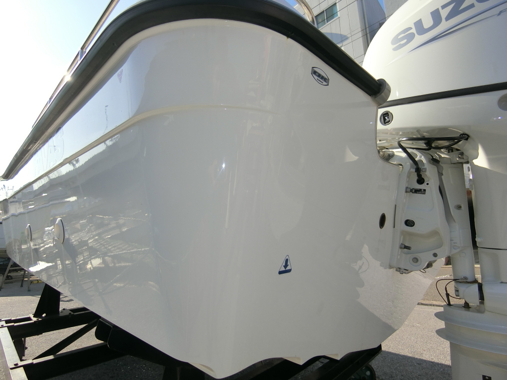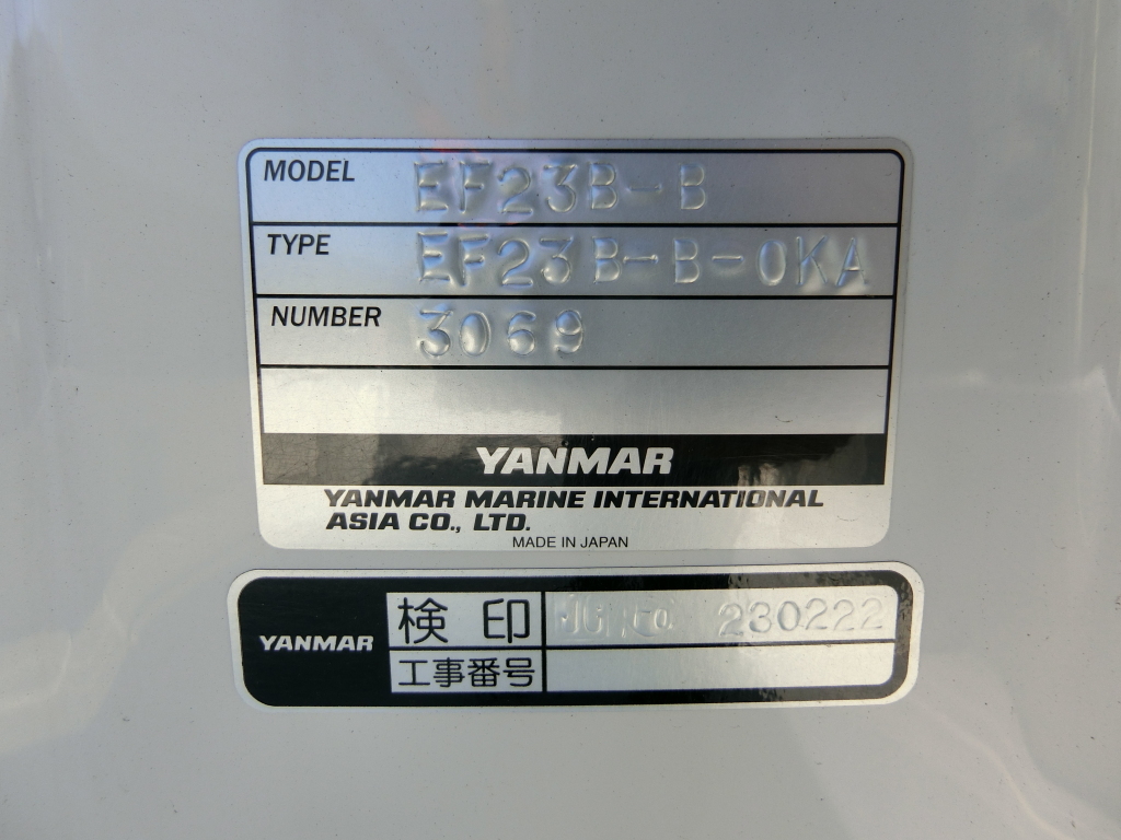 メーカー名をスズキと記載しておりますが、船尾に貼り付けられているステッカーをご覧いただければ分かりますが、実際には船体はヤンマーにて製造されたOEMボートです。
