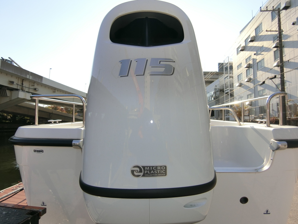 エンジンはスズキ DF115B(115馬力)で、2025年9月に製造された最新エンジンです。エンジンには「海洋マイクロプラスチックの回収装置」が備わる、環境に配慮された仕様となります。