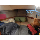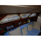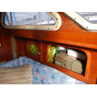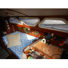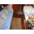 5人用の寝室を備え、船首キャビンにはダブルV字型ベッド、メインキャビンには2つのストレートソファベッド、そして船尾クォーターベッドが設けられています。ギャレーは、船尾側右舷に配置しております。キャビンのヘッドルームは72インチ(183センチメートル)です。