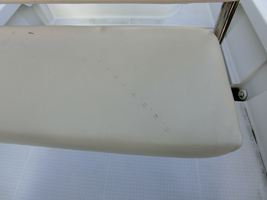 ・操船席はベンチタイプの二人掛け、若干汚れは見られますが切れなく良好です。