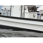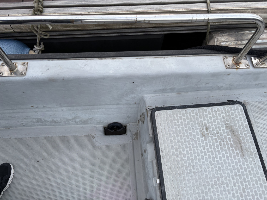 バウ両舷に擦れ痕はありますが、そこ以外は使用に伴う小傷と汚れ程度で磨きと洗いで綺麗になりますし、加修が必要な所はないと思います。