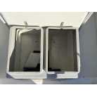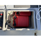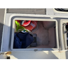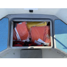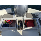 デッキ下の収納庫はバウに1つ、アフト側に2つ設置され、コンソール前側には大型のイケスが設置されています。