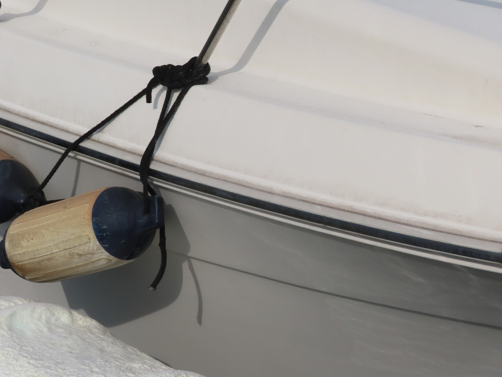 海上係留のため、船底の確認は出来ませんでしたので貝等の付着が多少はあるかもしれませんが令和7年9月に船底塗装がされています。