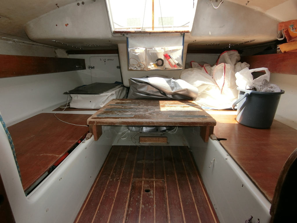 ・レースに使用されていたため船室内に無駄な物は置いておらず、シート類や工具類などの保管場所となっております。