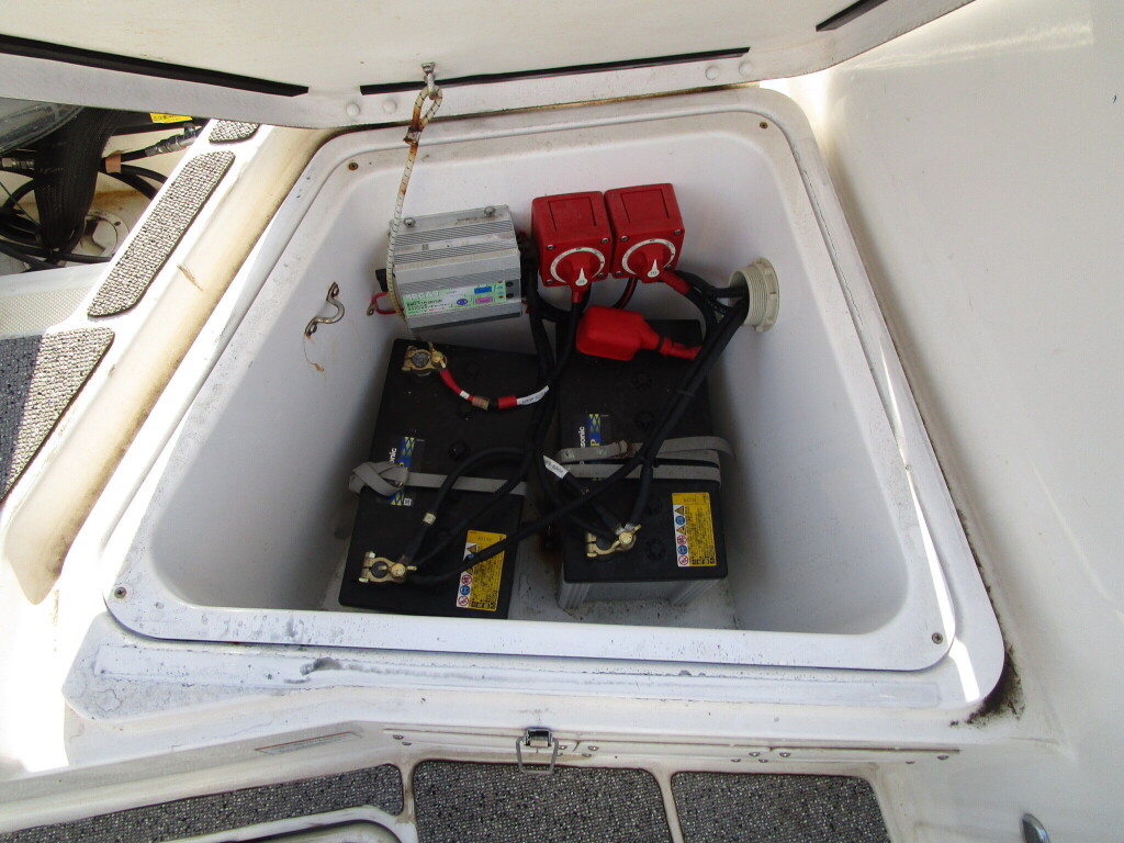 デッキは全面にデッキマットが施行されています。本艇は高年式で装備満載です。