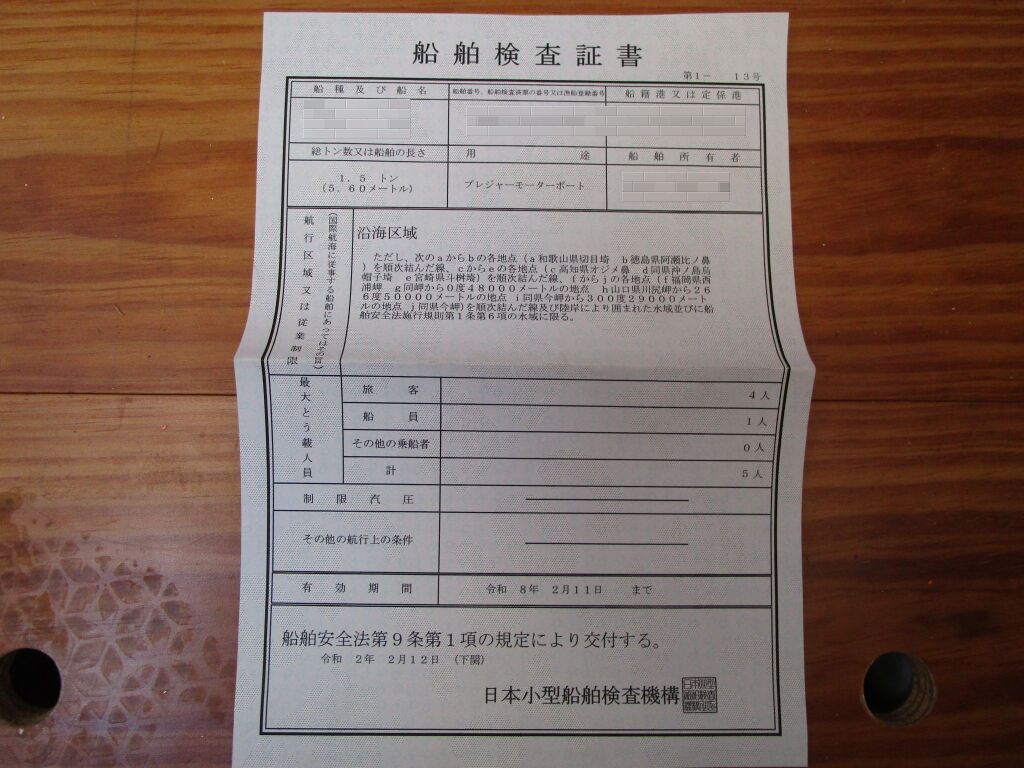 | 定員 | 5人 | 次回船検 | 本検査(2026年02月11日) |