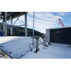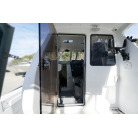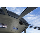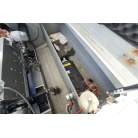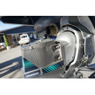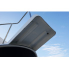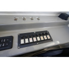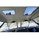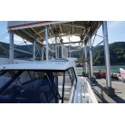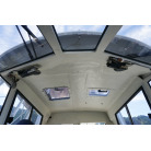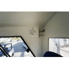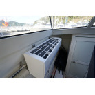 操舵席のGPS魚探とmarolのリモコンはアフトデッキに持ち出すことが出来るようになっています。キャビンの屋根上にエアコンの室外機が設置されています。