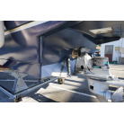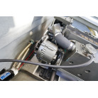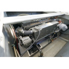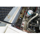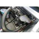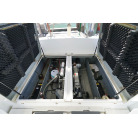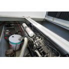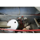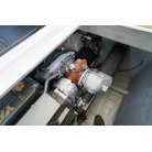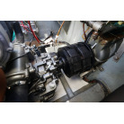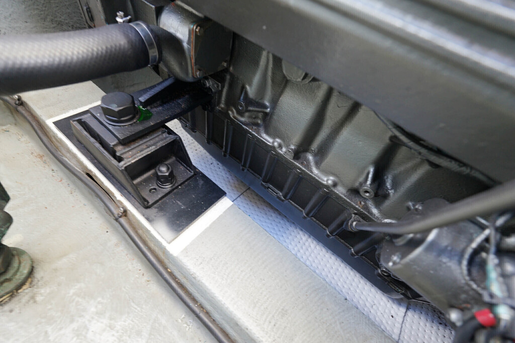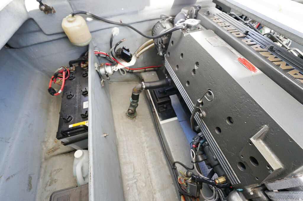 アフトデッキ床のハッチを開くとエンジンにアクセスできます。エンジンルームは広くメンテナンスが容易です。オイル漏れの跡もなく始動もアイドリングの状態も良好でした。エンジンは2016年に大幅なメンテナンスをした際に塗装もされています。ドライブのSZ301は2025年にオーバーホール、同時にターボとミキシングエルボーも新品に交換しをしてしっかり整備済みとのことです。