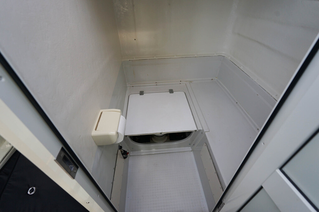 室内には2025年に家庭用エアコンが新設されていますが、エアコン稼働には別途ポータブル電源などが必要になります。操舵席下にアマチュア無線機がありますが使っていないため動作不明です。