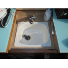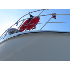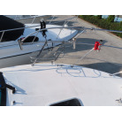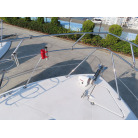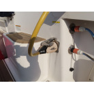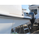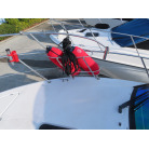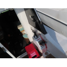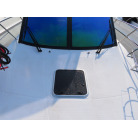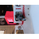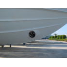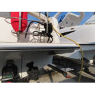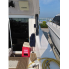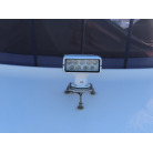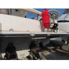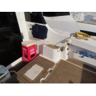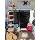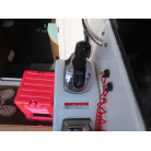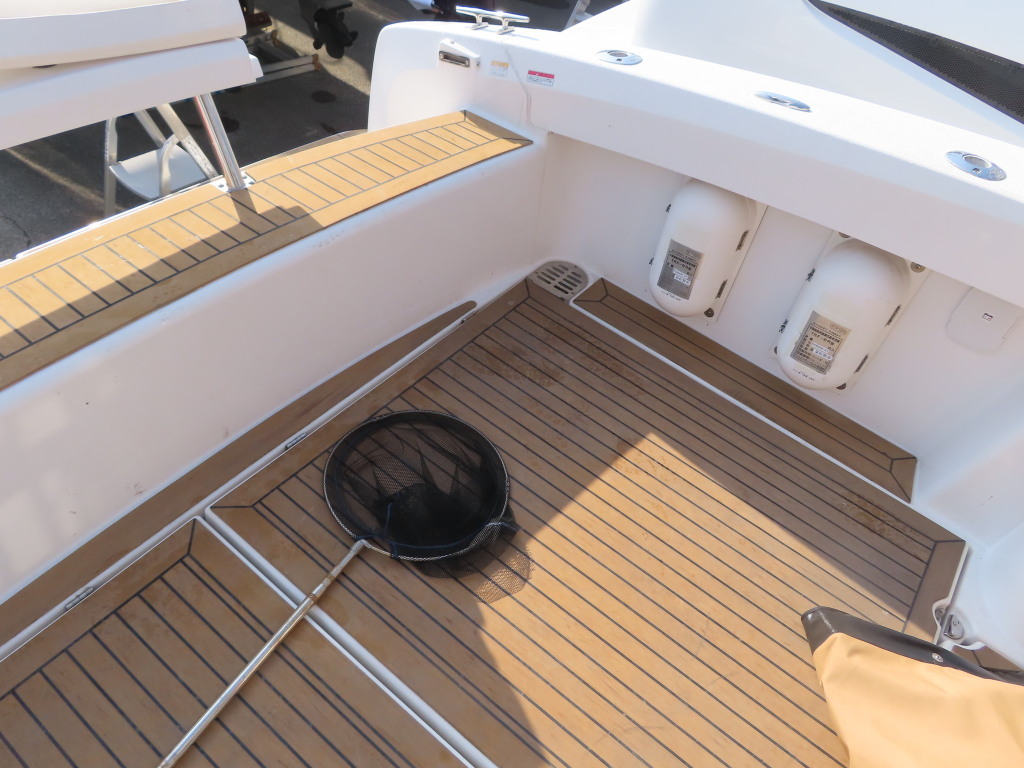 この艇はアルミ艇のためキャビンを前に持っていくことにより、アフトデッキを広く取ることが出来ているそうで、デッキ後部にデッキウォッシャーと清水シャワーが装備され、釣りの後の手洗いなどに便利です。
