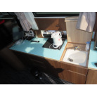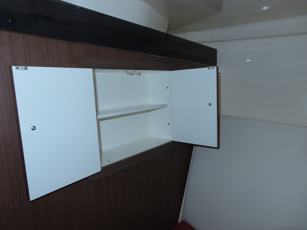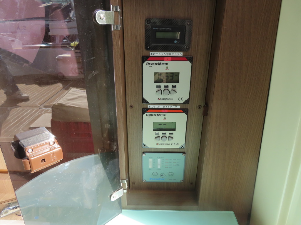 右舷側のキャビン入口にギャレーを装備し、その壁に配電盤を装備しています。
