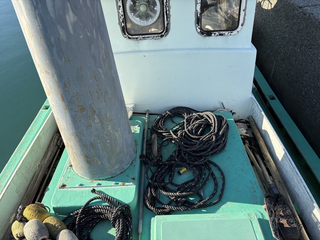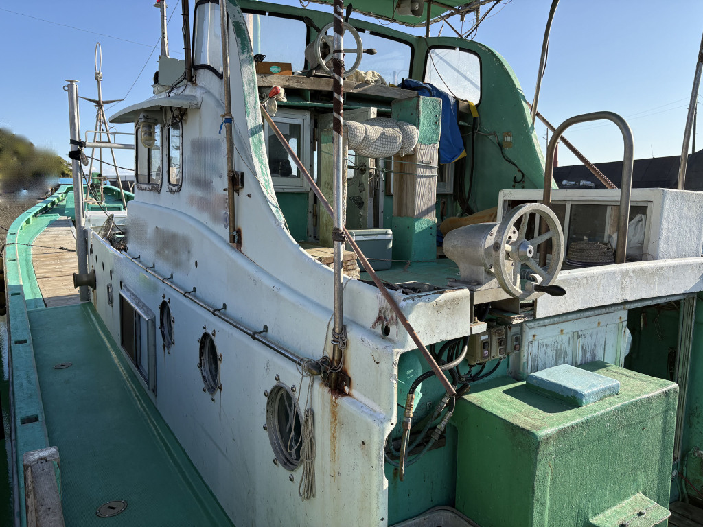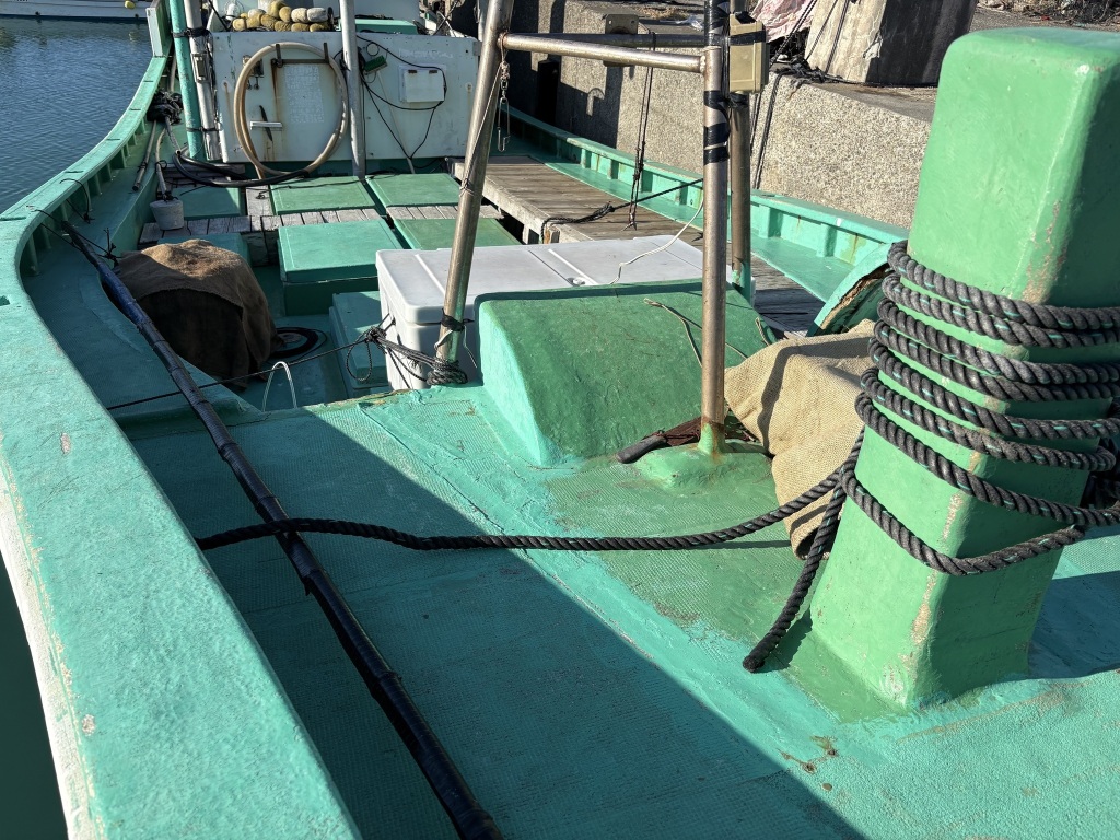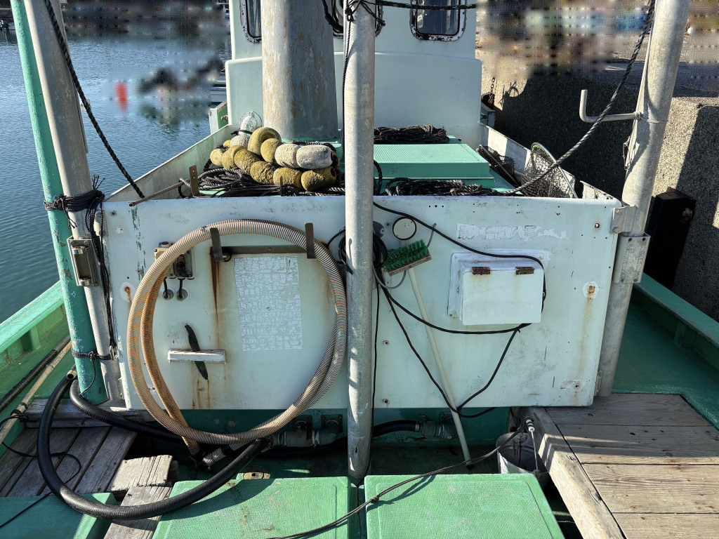 オーナー様、もうそろそろ漁師を引退しようかとお考えで、誰か必要とされる方がいらっしゃるならということで、取材させていただきました。禁漁時に年1回の船底清掃やメンテナンス、オイル交換等は年2回程度定期的にされてるようで、これまで特に大きな問題も無く使用してきましたので、大きな整備記録等はありませんとのことです。