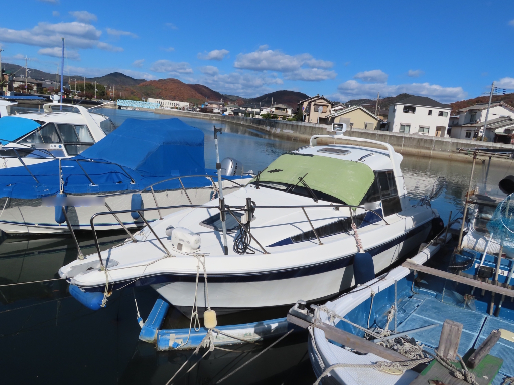 この艇は、兵庫県内のボートパークに海上係留しています。