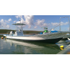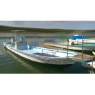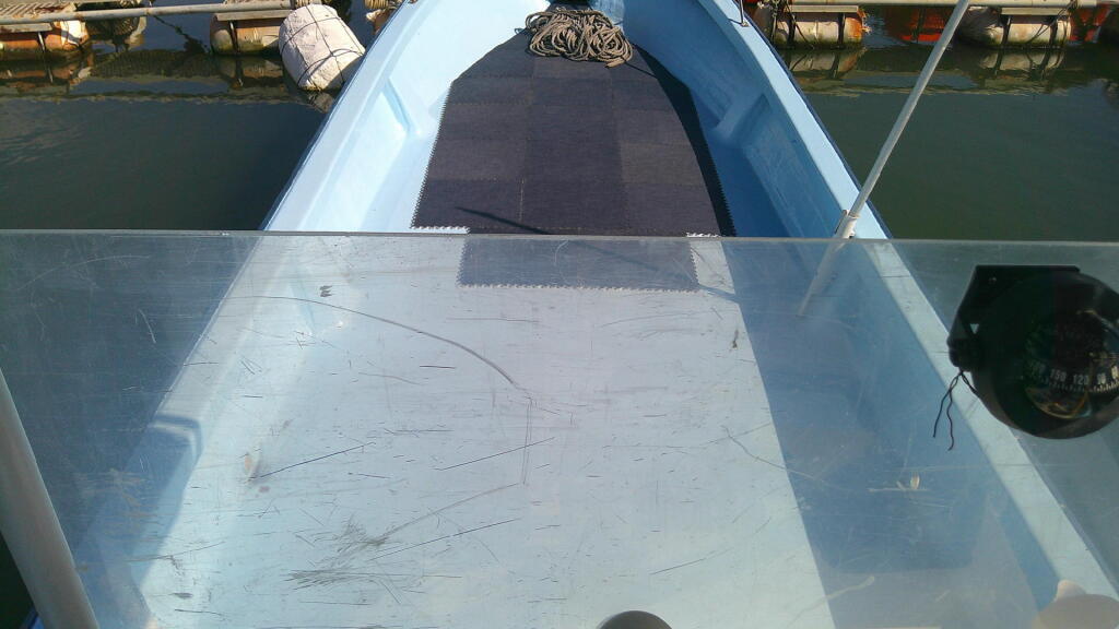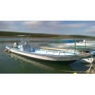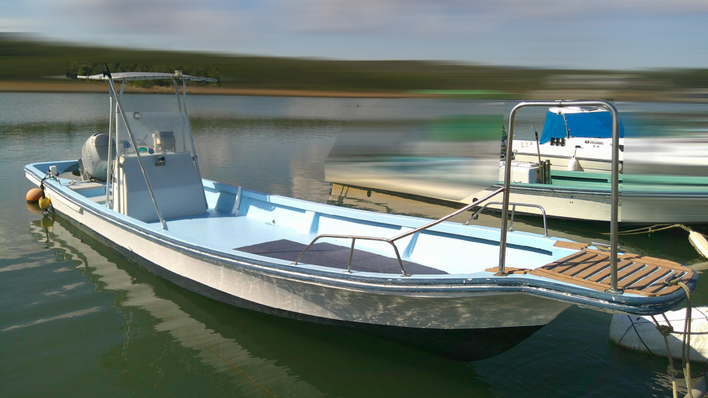 細身の和船船体にセンターコンソール。ホースビットもあり漁港での槍付け等にも使い勝手が良さそうです。