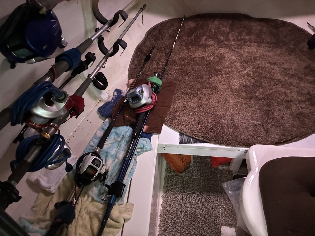 船体はウォークアラウンド、2ステーション、マロ―ルリモコン、フソーGPS魚探、フルノ魚探、フソーGPS、スバンカー、リール電源、ウインチなど釣りを擦る事に特化した装備です。オーナー様は流し釣りコマセ釣りがメインです。