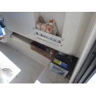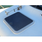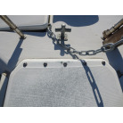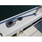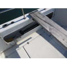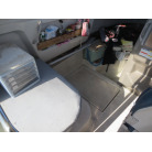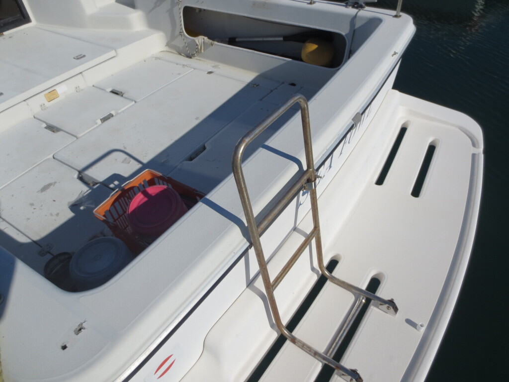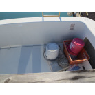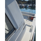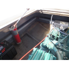 エンジンはボルボペンタのディーゼルを床下に搭載している為、アフトデッキは余分な構造物も無くすっきりしており、サイズ以上に広さを感じる造りです。シャフトはシールスタンとなっており、メンテナンスも手間も省けると思います。