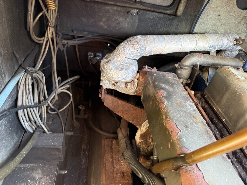 ミツビシ製135馬力のディーゼルエンジンが搭載されていますが、オーバーヒートしていますので、エンジンオーバーホール、載せ替え、船外機仕様などの対処が必要となります。