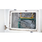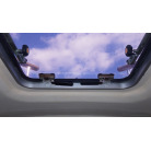室内は窓が広いので大変明るく、前方のガラスには回転窓が装備されています。