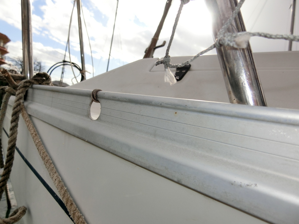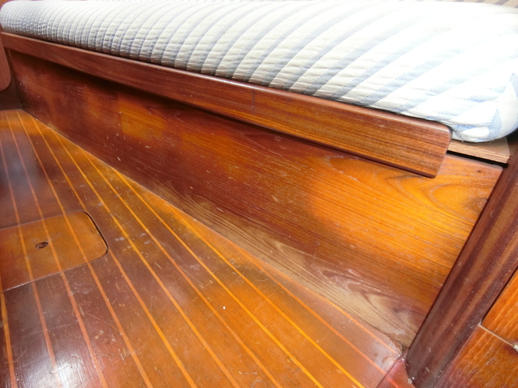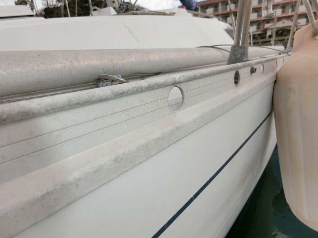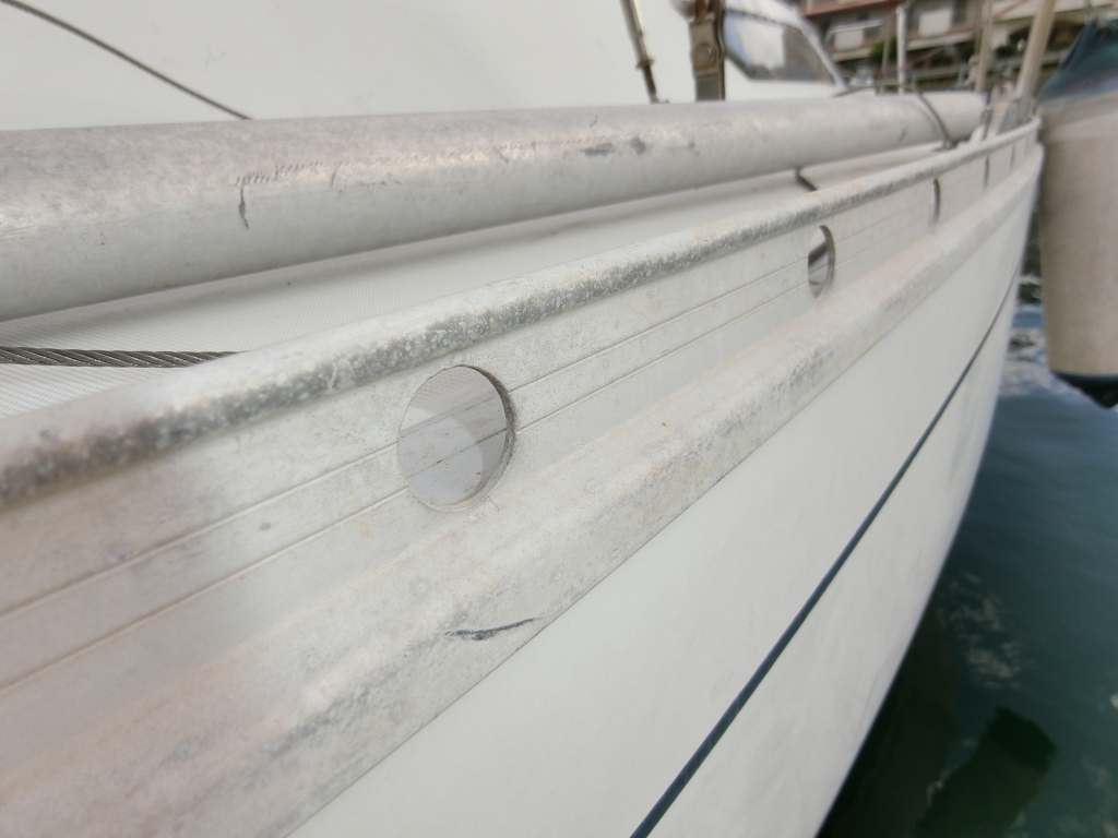 ・バウハッチやキャビン両側、船尾クウォーターバースの明かり取り窓のアクリルは劣化や一部欠けがあり、