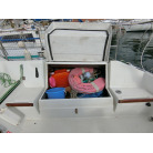 ・船室内に入って左舷側が保冷庫、シンクのシンプルな仕様です。