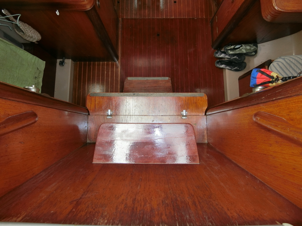 ・クオーターバースは左舷側後方で、マット下部がバッテリースペースです。