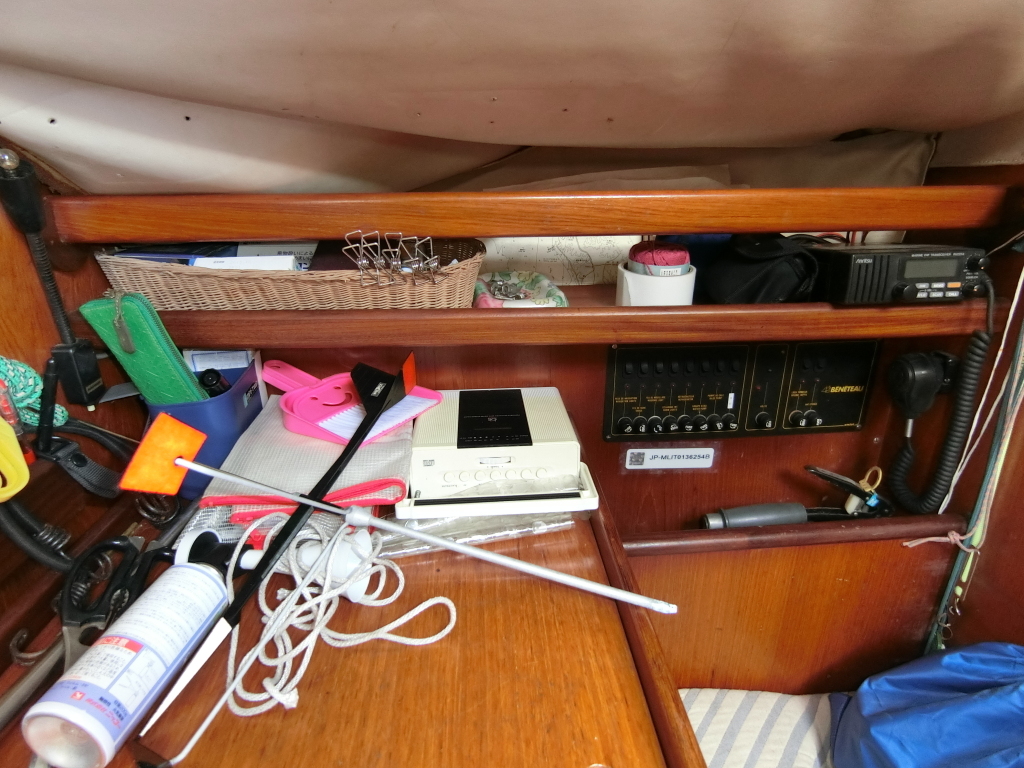 ・右舷側手前のチャートテーブルにスイッチパネル、マリンVHFが設置されており、VHFは正常可動します。