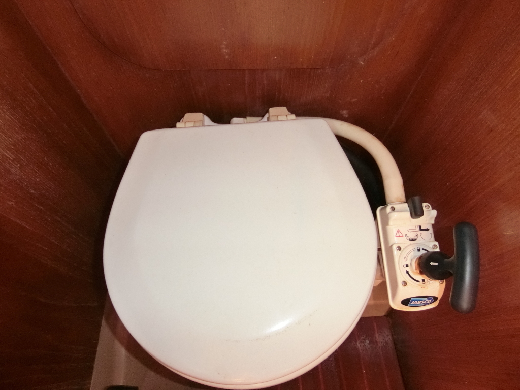 ・右舷側後方が個室マリントイレです。(手動式)