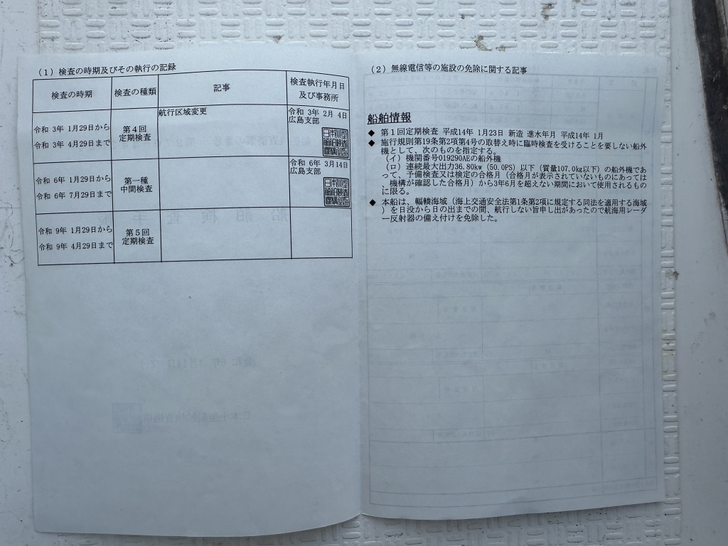 | 定員 | 4人 | 次回船検 | 本検査(2027年04月29日) |
