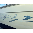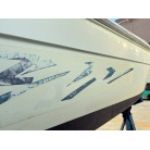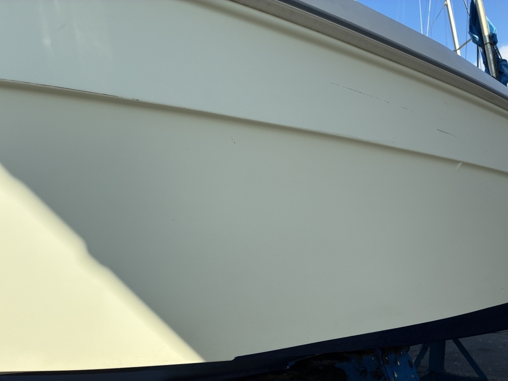 左舷側の比較的前方には擦りキズ、また左舷側の比較的後方部分の一部に塗装の剥がれが確認されました。